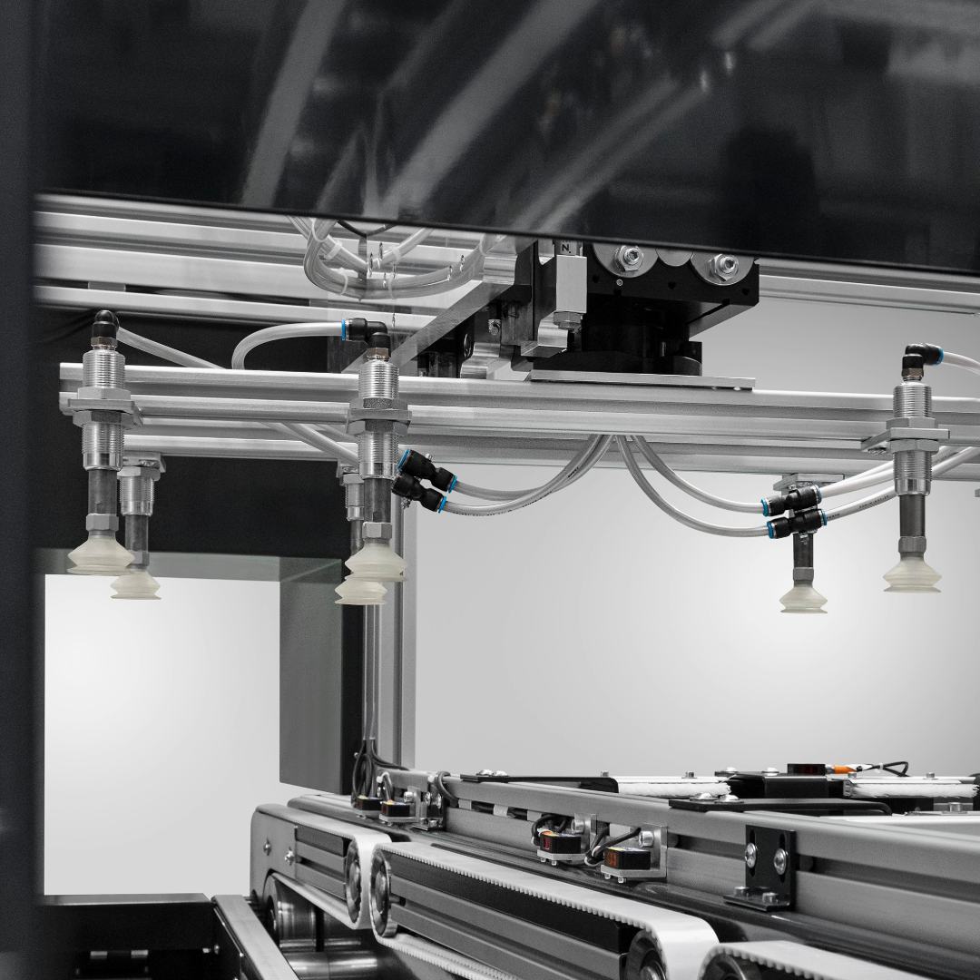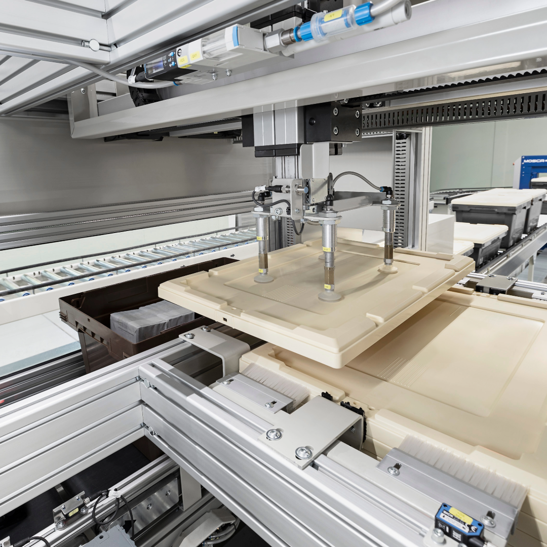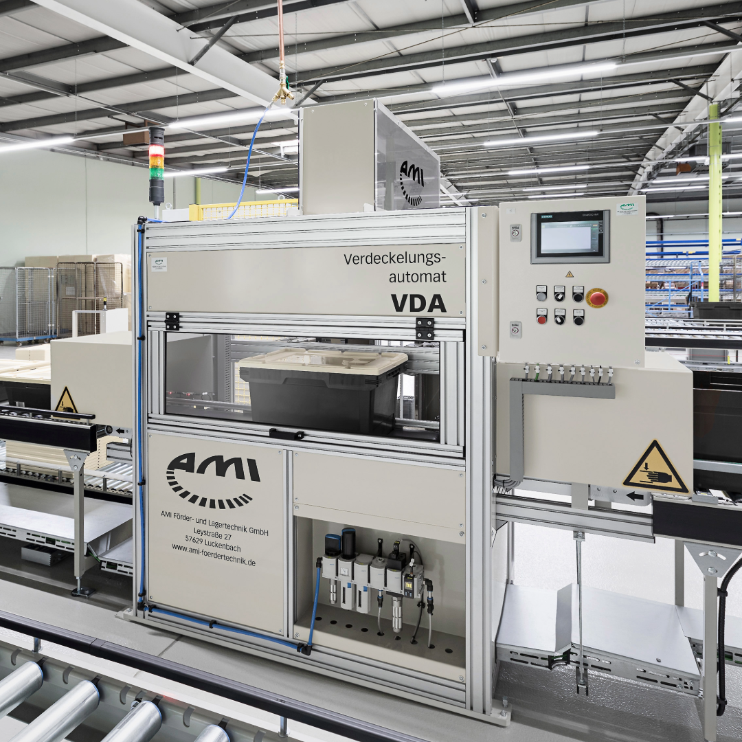 Die flexible Integration in bestehende Förderstrecken macht den Verdeckelungsautomaten vielseitig einsetzbar. Besonders in der Lagerlogistik, Produktion oder im Versandbereich trägt er zur Automatisierung bei, wenn schnelle und zuverlässige Verdeckelungsprozesse gefordert sind. Das Ergebnis: eine gleichbleibend hohe Prozessqualität und optimierte Abläufe.